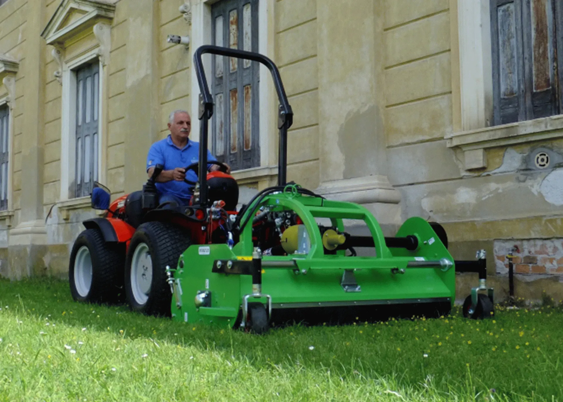 Zadný alebo predný mulčovač ELK s bočným posuvom (30 cm na oboch stranách) je vhodný na použitie na veľkých plochách na trávu (alebo vertikutáciu) a dreviny do priemeru 3 cm.